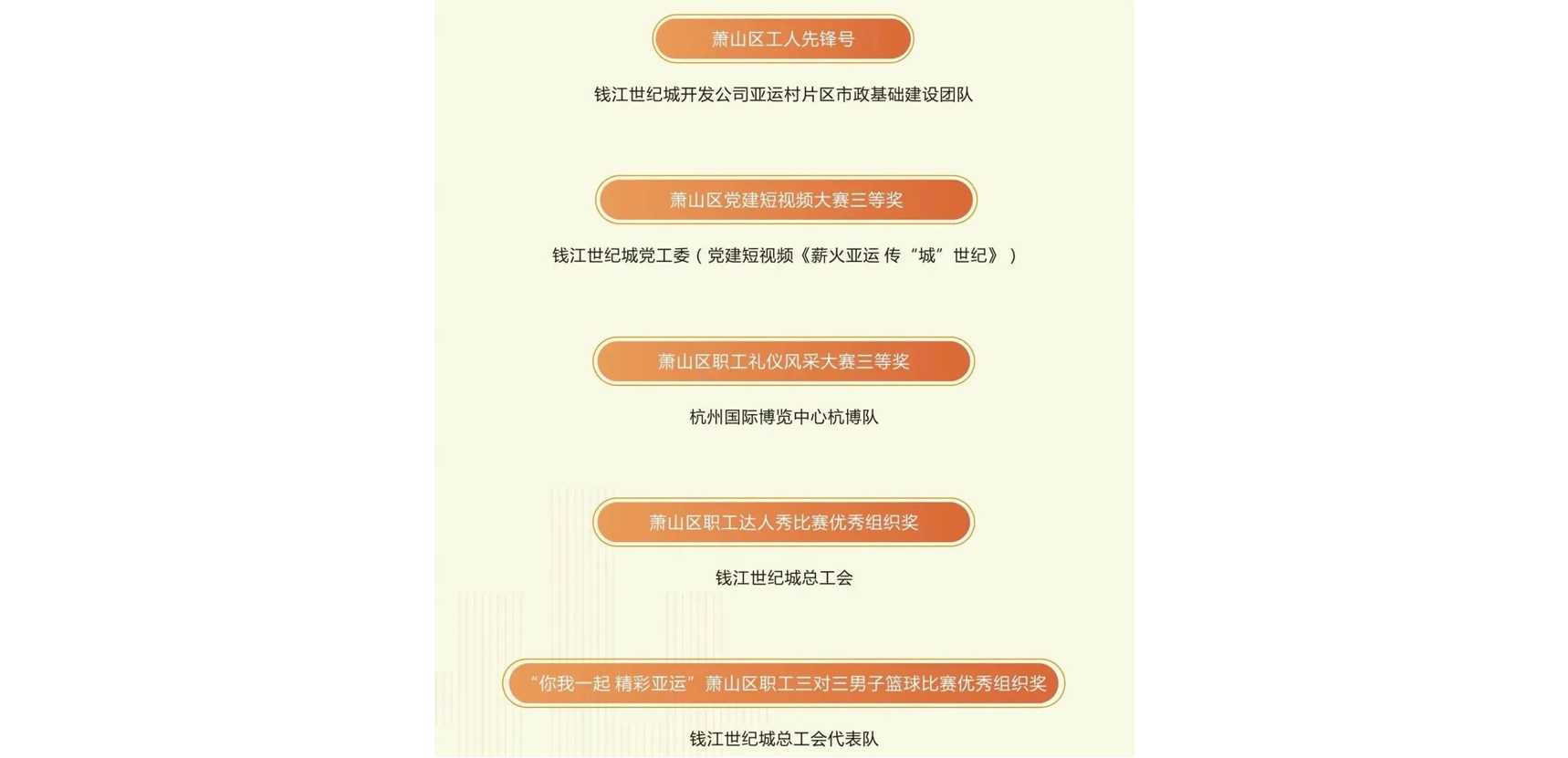 通過表彰先進,進一步鼓舞士氣、激勵擔當,為世紀城匠心保障亞運盛會精彩舉辦,精心推進“產城人文”深度融合營造良好氛圍。